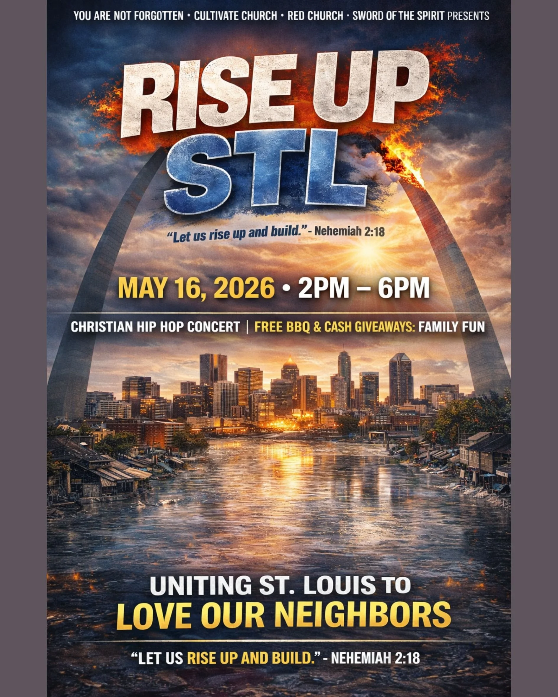 Rise Up STL is a citywide unity event hosted by You Are Not Forgotten, Cultivate Church, Red Church, and Sword of the Spirit. This four-hour outreach is designed to bring hope, healing, and tangible support to families still recovering.