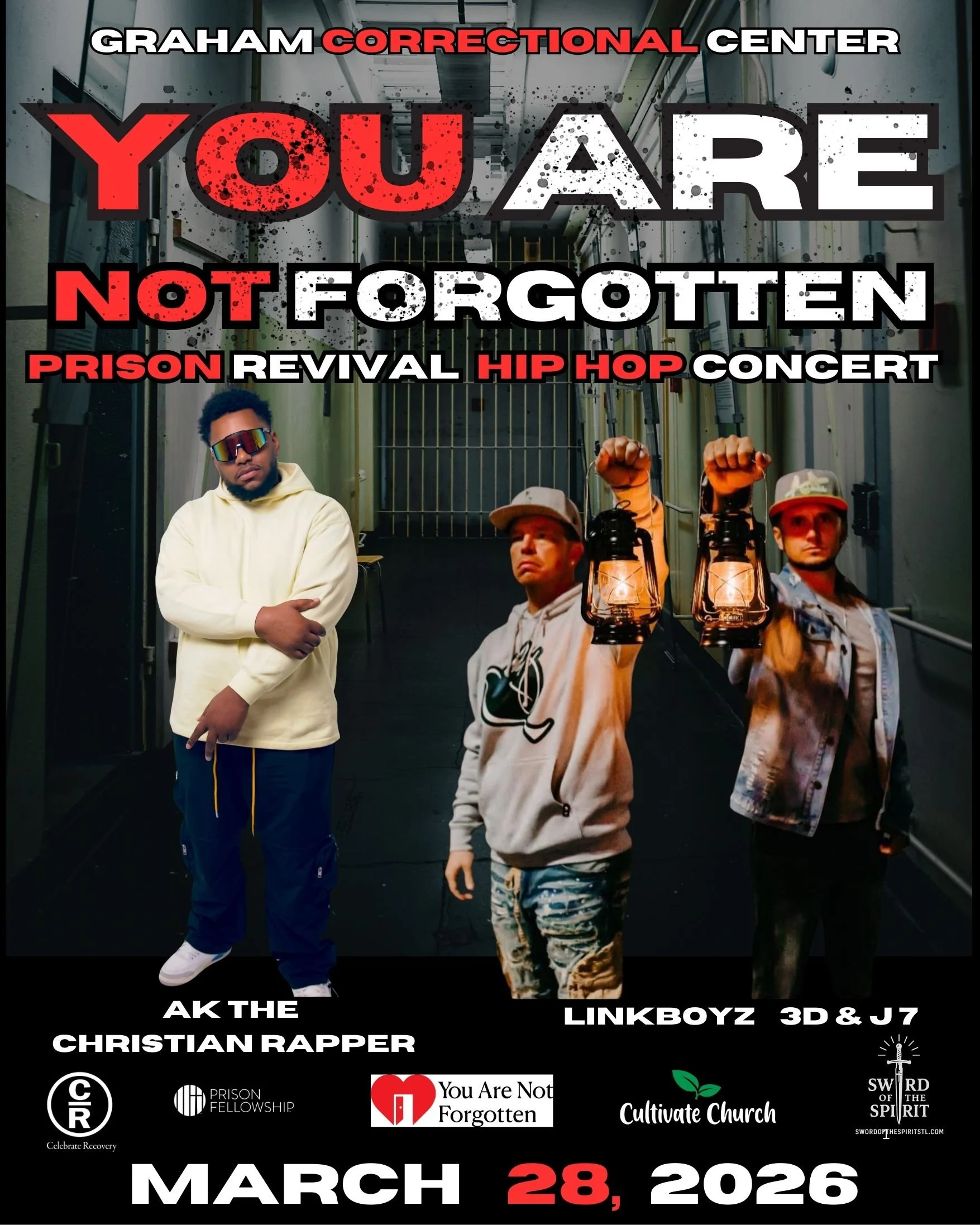 You Are Not Forgotten Prison Revival is more than an event. It is a Kingdom assignment. A night set apart for freedom, transformation, and encounter with Jesus Christ inside Graham Correctional Center.