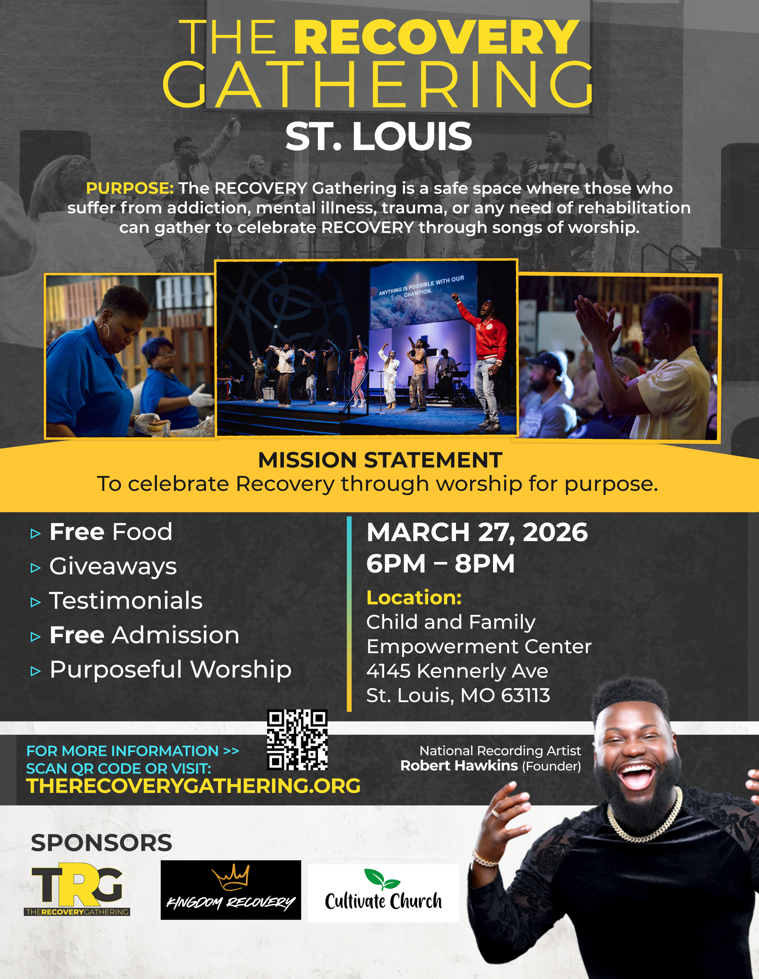 National Recording Artist Robert Hawkins is coming to The Recovery Gathering at The Cafe in St. Louis! 🎤🔥